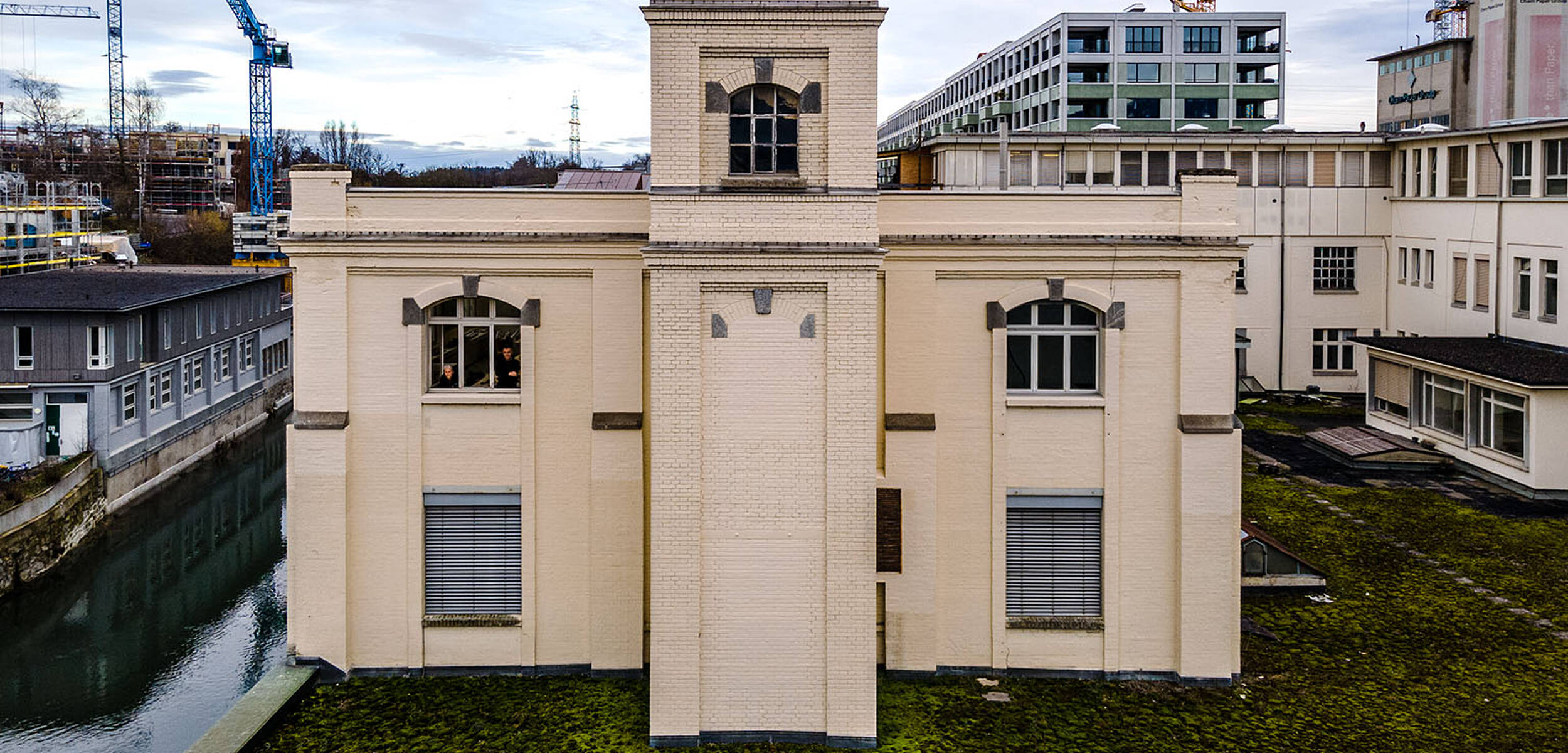 Früher repräsentativer Auftakt der Papierfabrik gegen Süden und heute einzigartige Event Location mit industriellem Charme.